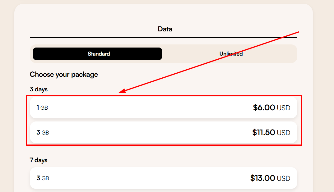 3๏ธโฃ Buy longerโvalidity plans โ 30โday plans offer better $/GB than 7โday plans. For example, 10GB/30 days costs $54 ($5.40/GB) while 1GB/7 days costs $4 ($4/GB? Actually 1GB for $4 is cheaper per GB โ but for heavy users, larger bundles save per GB. Compare carefully.)