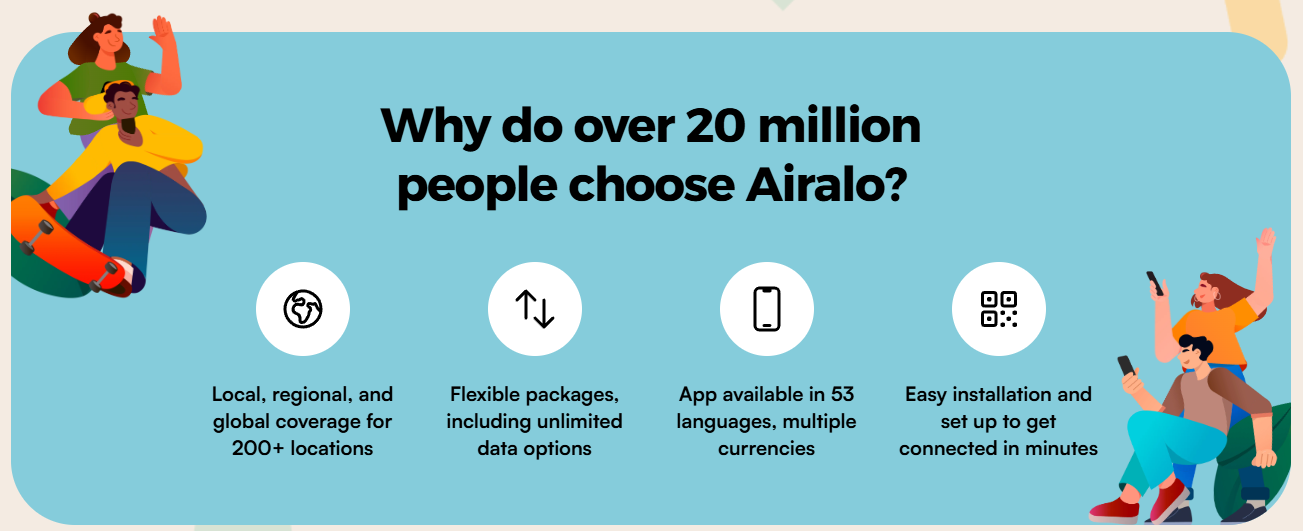 Whether you’re backpacking through Southeast Asia or on a business trip to New York, Airalo + our exclusive codes make staying connected affordable and hassleโfree.