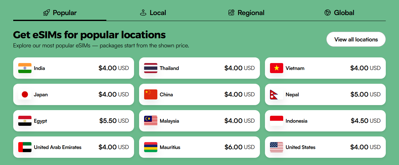 India, Japan, USA, Thailand โ get high-speed data starting at just $3.