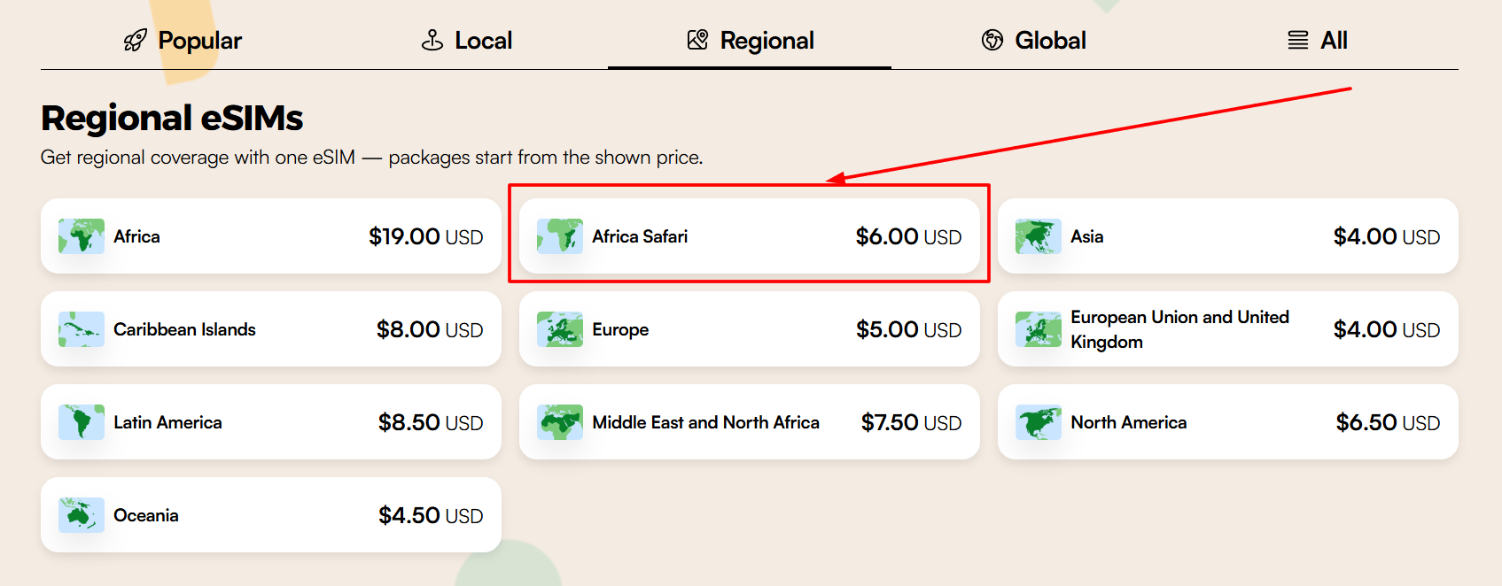 Step 3 โ Browse Local, Regional, or Global plans โ choose your destination (e.g., India, USA, Japan)