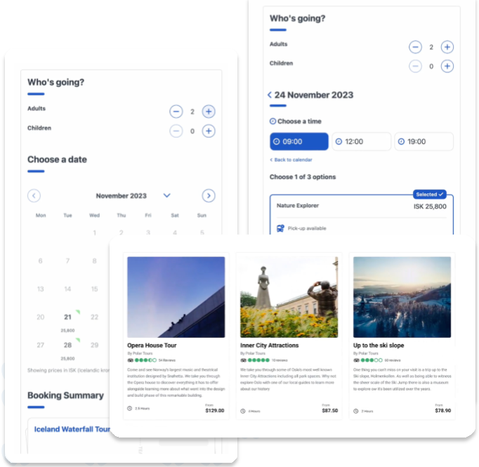 Update availability instantly and avoid overbooking. Bokun shows your live inventory, helping you deliver smooth customer experiences.