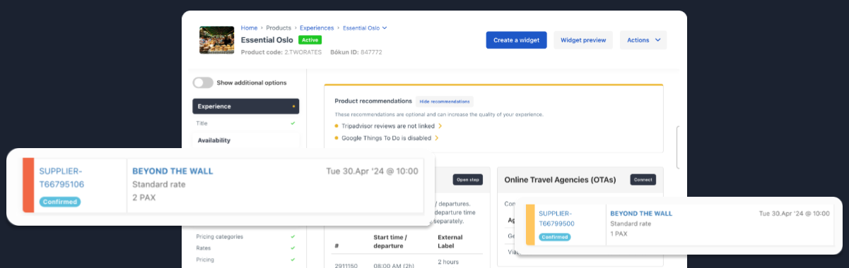 Bokun lets you manage all your bookings from one dashboard whether they come from your website, OTAs, or marketplaces. No more switching between multiple systems.