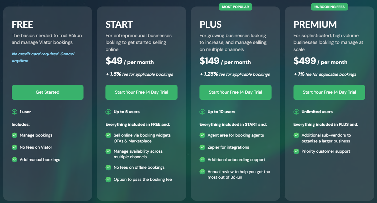 ๐Ÿ’ธ Price: $0 -For the basics needed to trial Bokun and manage Viator bookings