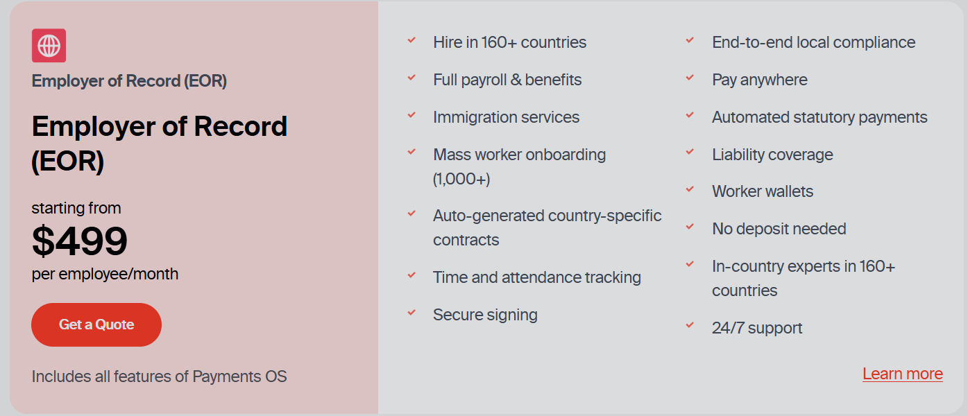 - ❌ Premium pricing for EOR ($599/month).